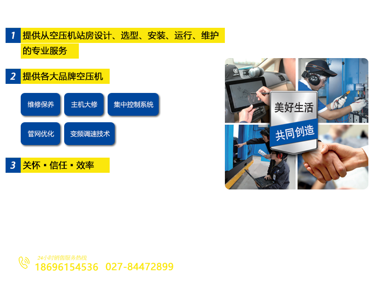 空气压缩机:空气压缩机是空压机站房的核心设备,主要用于将大气中的空气压缩成高压气体,为后续的工艺和设备提供动力。 空气储罐:空气储罐用于存储和平衡压缩机出口的气体压力,并消除压缩机输出气体中的脉动。它们还可以提供稳定的空气供应,并在压缩机停机时为系统提供缓冲。 气处理设备:空气处理设备包括干燥器、过滤器和油水分离器等,用于去除气体中的水分、油分和其他杂质,保证输出空气的质量和纯度。 冷却设备:冷却设备用于冷却压缩机输出的高温气体,以防止设备过热,保护设备的寿命和可靠性。 空气压缩机控制系统:空气压缩机控制系统用于控制和监测空气压缩机的运行状态和参数,包括压力、温度、流量等,确保系统稳定和安全运行。 电气控制系统:电气控制系统用于控制和监测空压机站房中的所有电气设备和仪表,包括空气压缩机、冷却设备、空气处理设备等。 其他辅助设备:如照明设备、通风设备、消防设备等,以确保空压机站房的安全和正常运行。 武汉易天达机械设备有限公司 18696154536