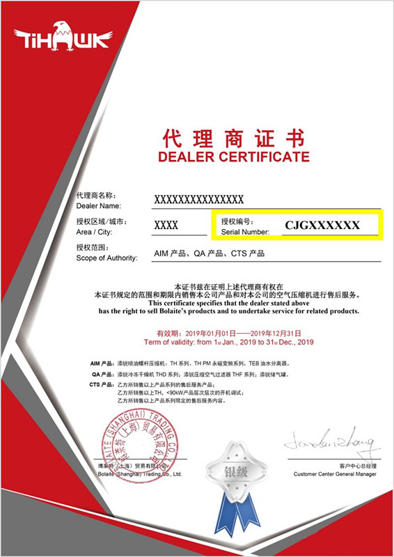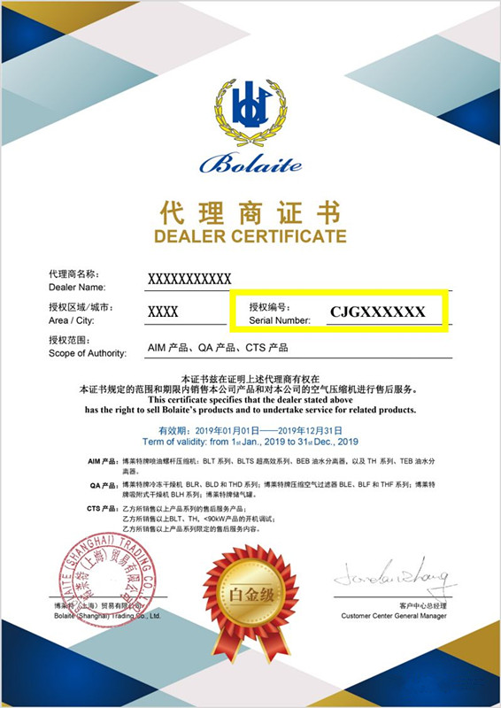 自2019年4月23日起,“博莱特代理商官方授权资质”线上查询”功能已正式生效并投入使用!